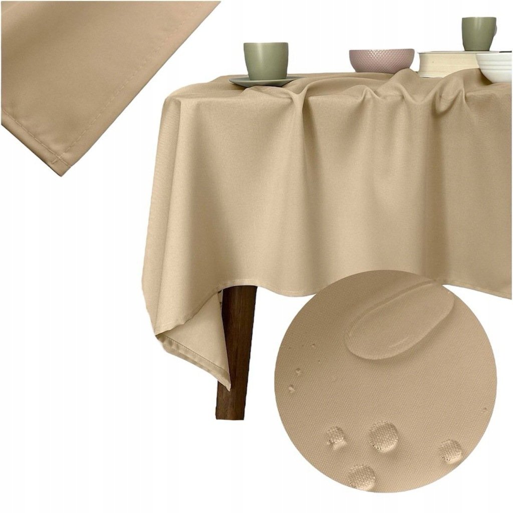 OBRUS PLAMOODPORNY 140×300 świąteczny na stół Wodoodporny klasyczny Beżowy