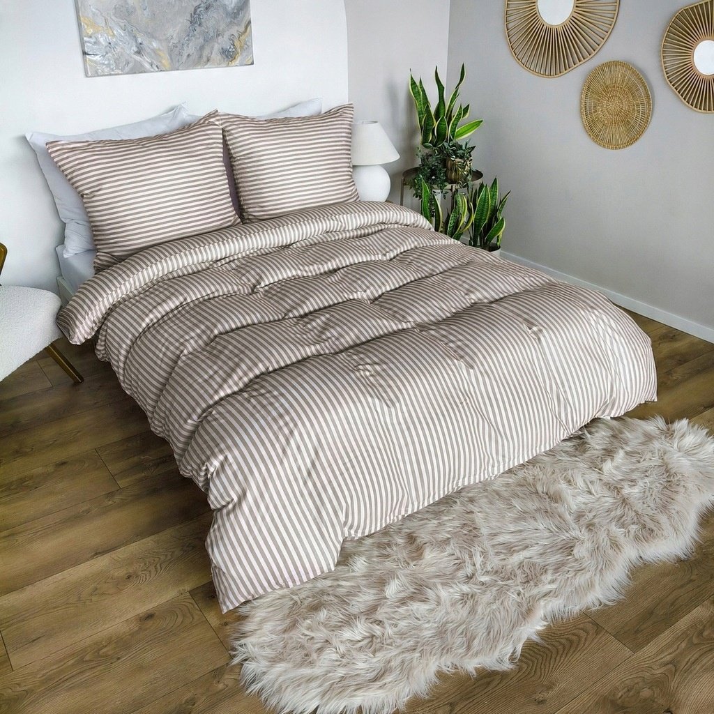Komplet pościeli 160×200 +2 poszewki 70×80 mikrofibra w pasy kolor Cappuccino Brown Stripes Polska