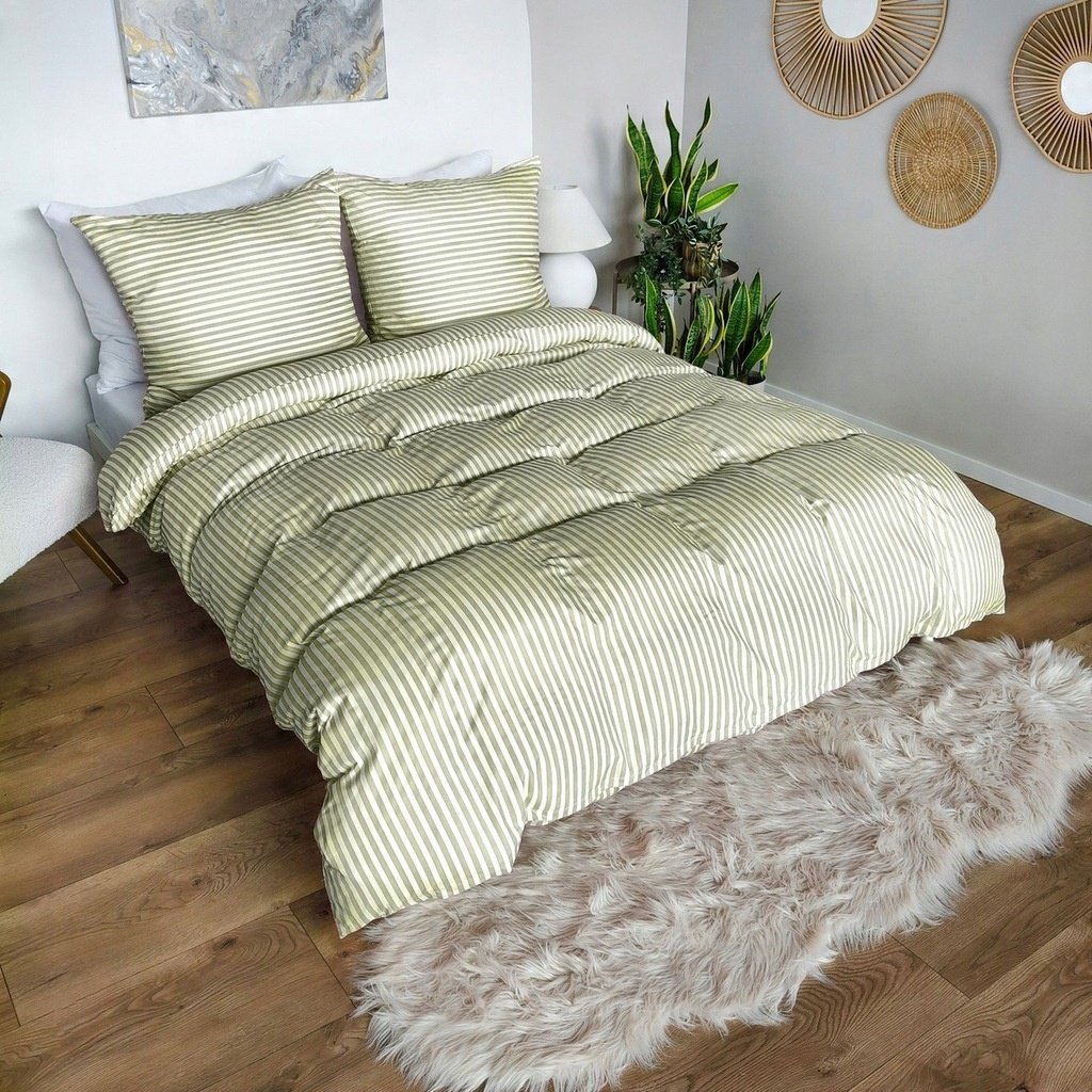 Komplet pościeli 160×200 +2 poszewki 70×80 mikrofibra w pasy kolor khaki Polska