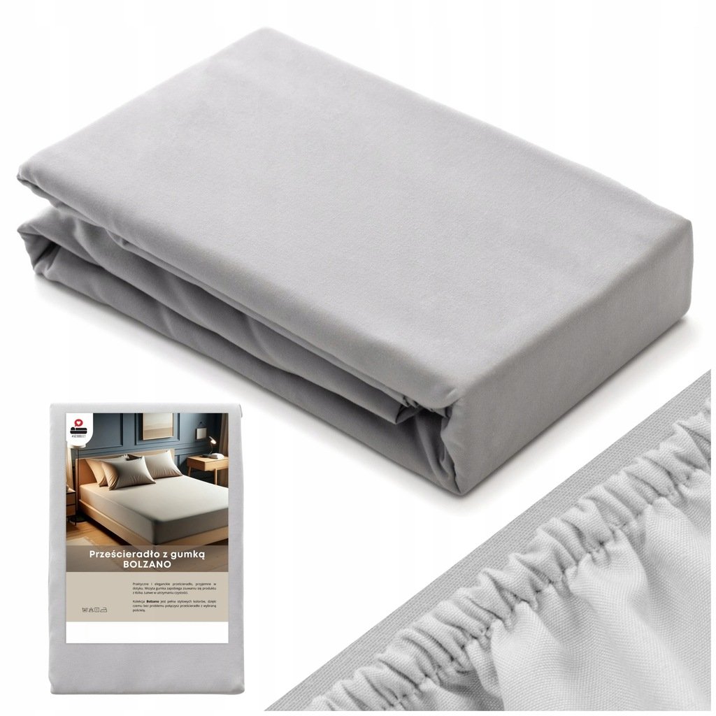 PRZEŚCIERADŁO 80×160 Z GUMKĄ SATYNA BAWEŁNIANA BOLZANO JASNE SZARE
