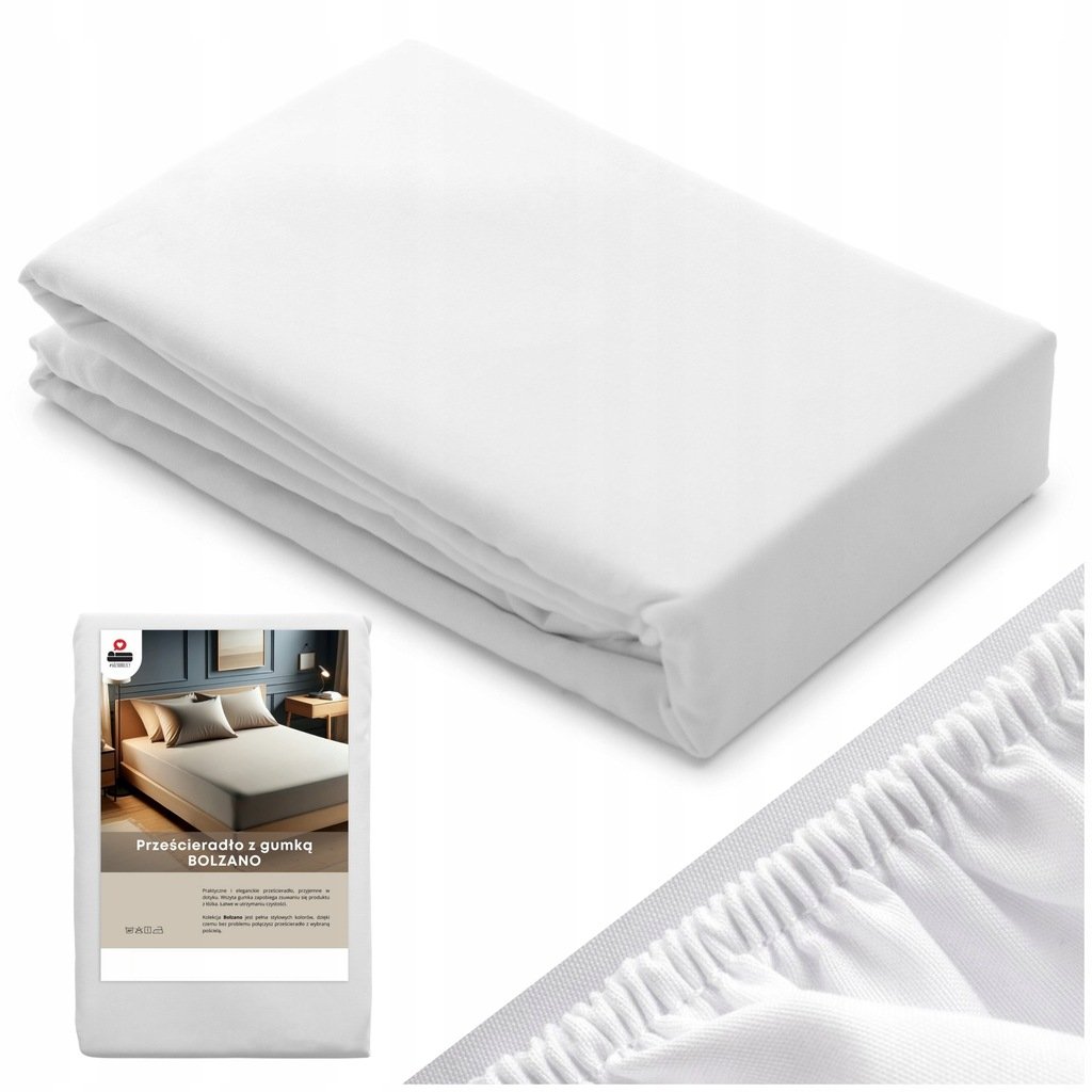 PRZEŚCIERADŁO Z GUMKĄ 70×140 CM BIAŁE BOLZANO SATYNA BAWEŁNIANA JEDNOLITE